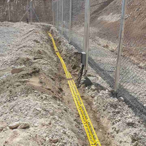 2. All power and earthing cables are to be buried a minimum of 500mm below grade and backfilled with 100 mm of sharp on top of the cables.
